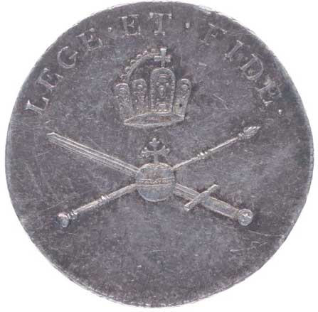 7řádk.nápis pod korunou / pod božím okem drží dvě ruce žezlo a meč, Ag 17 mm, 1,41 g, Nov.IX/D-5b, Mo.-, Do.2459 R! |
