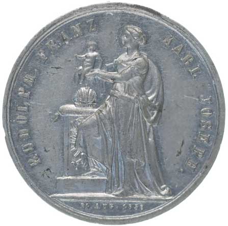 573. | Nesign. - medaile na narození arc.Rudolfa Franze Karla Josefa, 1858