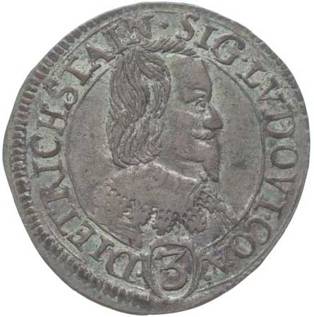 576. | 3 Krejcar 1639, Pol.21, Do.3291, Chaurův podl.štítek RR! | 1/1 | 15000,- | --.- |