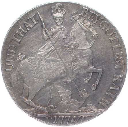 581. | 1/2 Tolar 1774, korunovaný znak, opis / svatý Jiří zabíjí draka