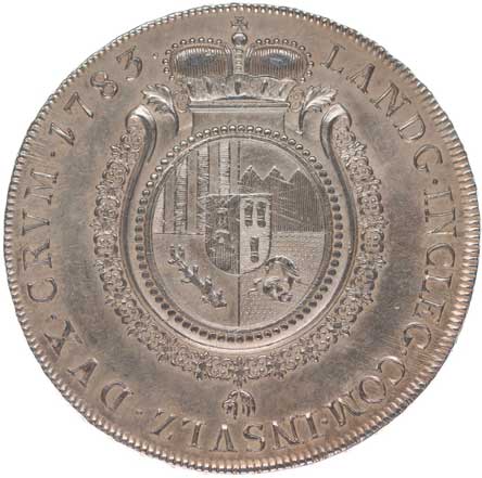 Hlava zprava, latinský opis / německý nápis ve věnci, Ag 41 mm, 34,50 g, ČS.1540 |