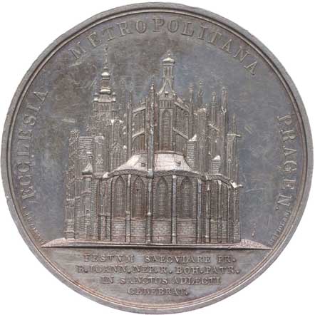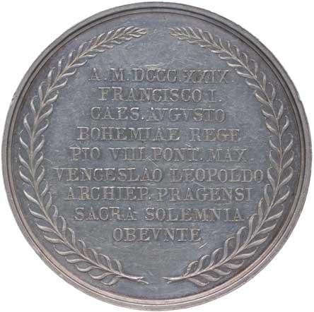 Chrám Sv.Víta, 4řádk.nápis v úseči, opis / 9řádk. nápis ve vavřínovém věnci, Sign., Ag 50 mm, 62,91 g, Don.4654, Přib.574 R! |