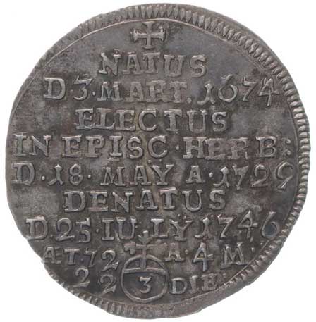 646. | Ag intronizační žeton 1779, Ag 30 mm, Ta.262, S-V.str.307