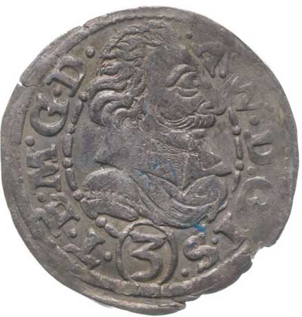 628. | 3 Krejcar 1673 zn."špice", S-V.328-G3/C3 R! | -1/1- | 1500,- | --.- |