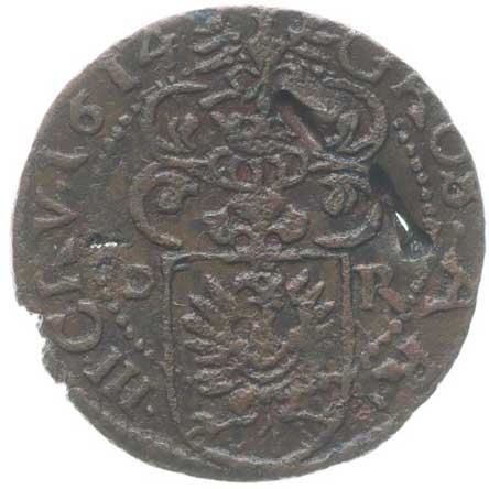 681. | 3 Krejcar 1614, D.Raschke - dobové Cu falzum, Fr.3046