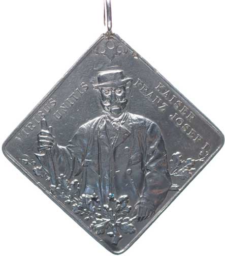 jubilejní střelby 1542-1893, polopostava císaře čelně, dvojitý opis / lev zleva, ve stuze nápis a vročení, Ag klipa 34x34 mm, 20,65 g orig.raž.ouško |