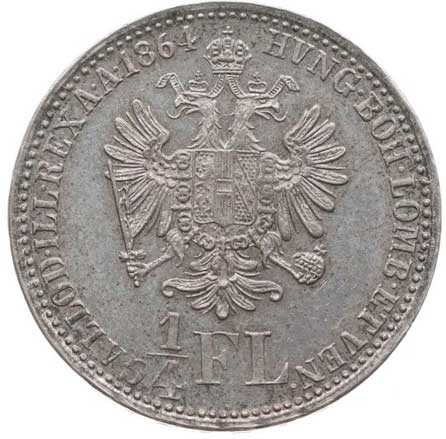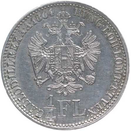 1173. | 1/4 Zlatník 1864 A dr.hr., dr.rysky v av. | tém.0/0 | 500,- | --.- |