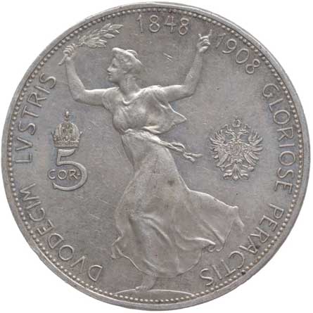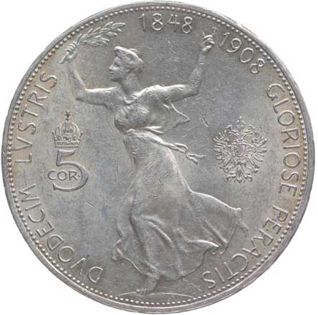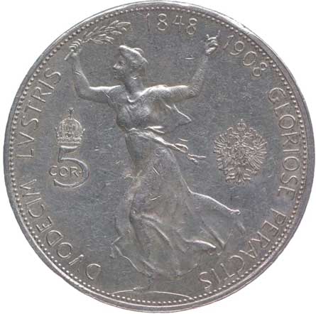 1199. | 5 Koruna 1908 b.zn. - jubilejní | tém.0/0 | 1300,- | --.- |