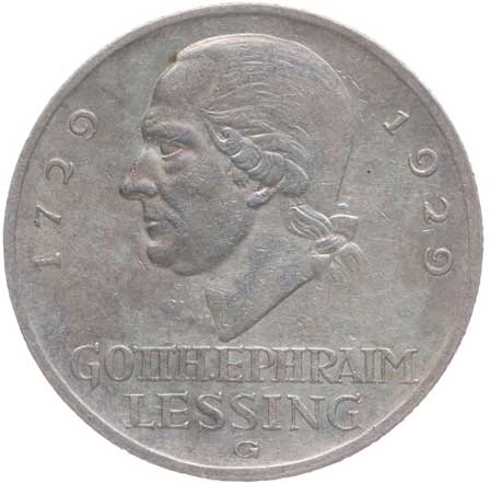 1411. | 3 Marka 1929 G - Lessing, KM.60, J.335 | 1/1 | 2000,- | --.- |
