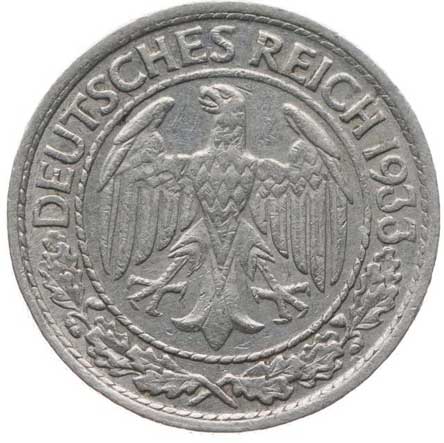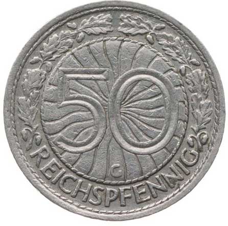 1415. | 50 Reichspfennig 1933 G, KM.49, J.324 R! | 1/1 | 1000,- | --.- |