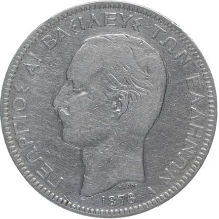1449. | 5 Drachma 1876 A, KM.46 | 2/1- | 900,- | --.- |