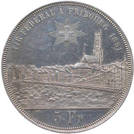 1455. | 5 Frank střelecký 1881 - Fribourg, KM.S15 | tém.0/0 | 3000,- | --.- |
