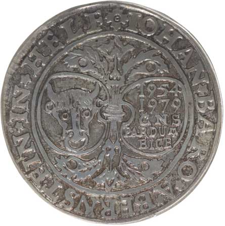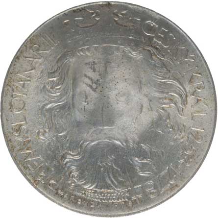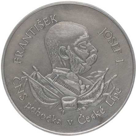 Korunovaná hlava zpředu, opis / replika pečeti ve dvojím opisu, Sign., Ag 750, 40 mm, 29.8 g, BK.32/6, MF.A28/6a |