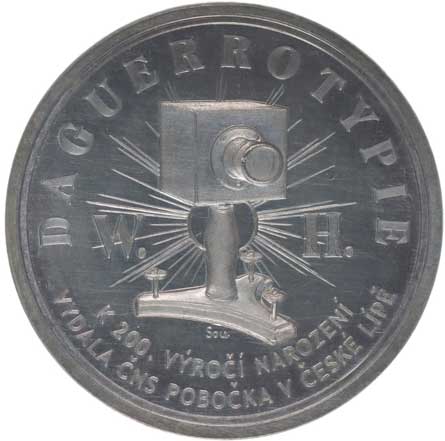 Poprsí čelně mírně, opis / fotografický přístroj, opis DAGUERROTYPIE 2řádk.opis, Sign.Sou, Ag 40 mm, 38,6 g, náklad 30 ks, číslov. IV MF.A4/5c |