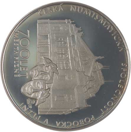 Akrobat ve vzduchu, nápis / znak města, nápis, opis, Ag 40 mm, 25,8 g MF.A34/d, náklad 100 ks, čís.: 61 |