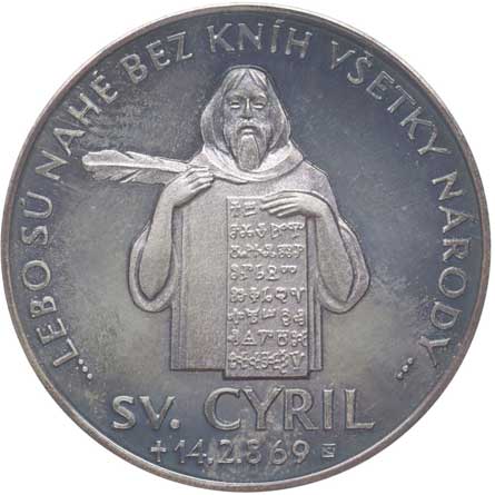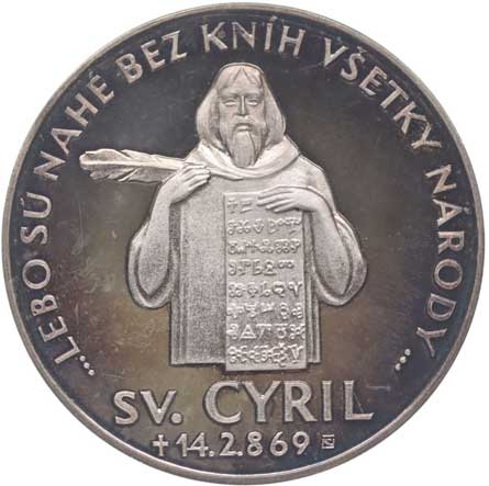 Hlava ženy na knize, trojitý opis / polopostava sv.Cyrila, nápis, opis Punc.900, Ag 40 mm, 38,70 g |