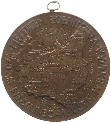 Poprsí zleva, opis / mapa Polska, opis Bronz 55 mm, 74,50 g ouško R! |