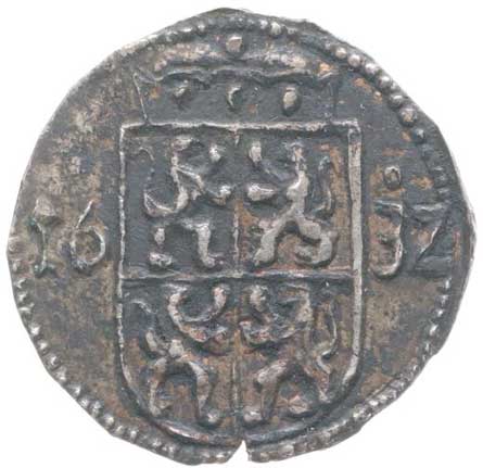 1662. | AE 20 mm, gryf ve výskoku zleva / běžící kůň zleva, nápis