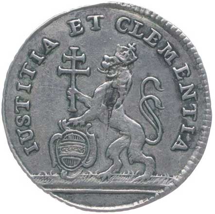 1907. | Intronizační žeton 8.9.1762, poprsí zleva, opis / pod znaky