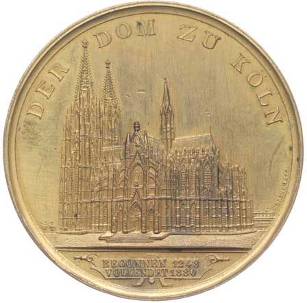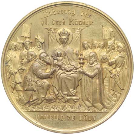 Pohled na dóm, 2řádk.nápis, opis / scéna klanění tří králů, nápis v úseči, opis, Pozlac.bronz 50 mm |