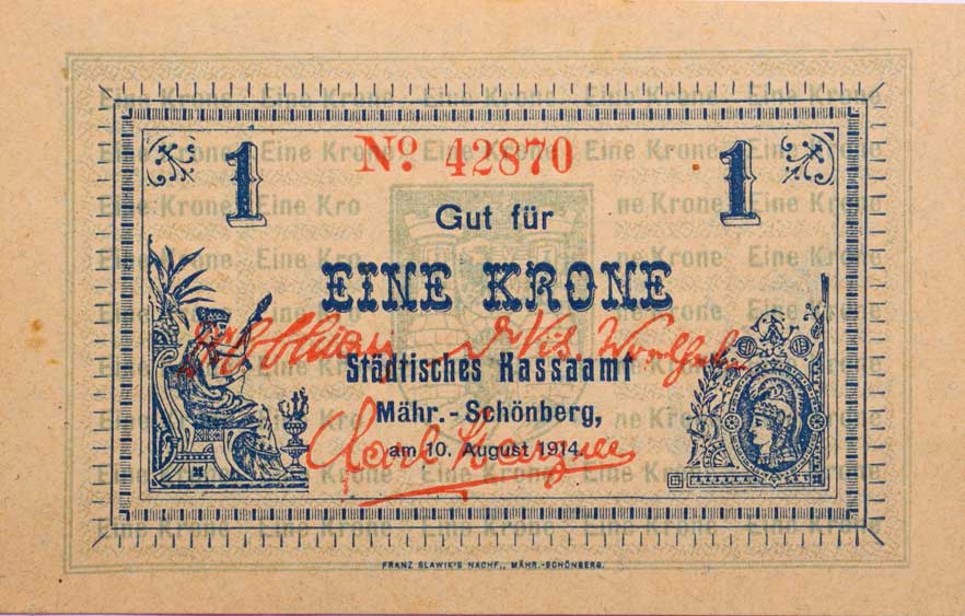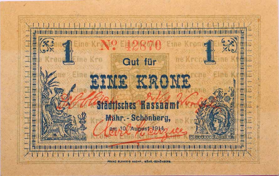 3411. | Šumperk (M.Schönberg) město, 1 Krone 10.8.1914, č.42870