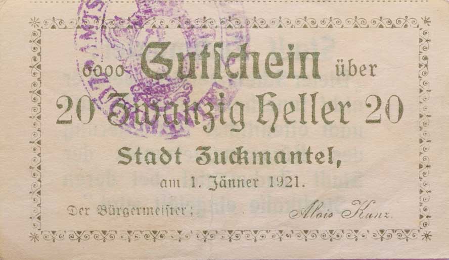 3436. | Zlaté Hory (Zuckmantel) - 20 Heller 1.1.1921, DH.240.1.2a | 1- | 320,- | --.- |