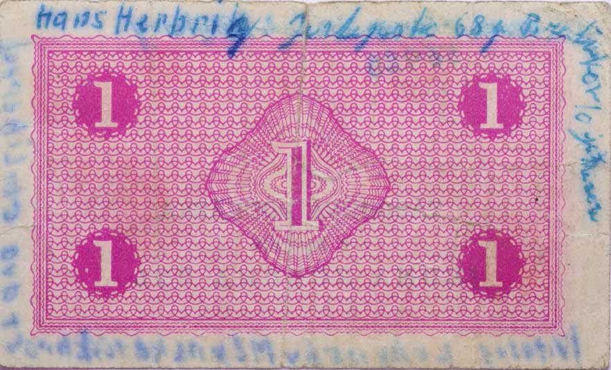 3462. | Reichenberg (Liberec), 1 Koruna b.l., č.008914, černý číslovač