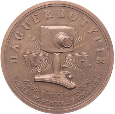 Poprsí čelně mírně, opis / fotografický přístroj, opis DAGUERROTYPIE 2řádk.opis, Sign.Sou, Bronz 40 mm, 32,3 g, náklad 50 ks, MF.A4/5c |