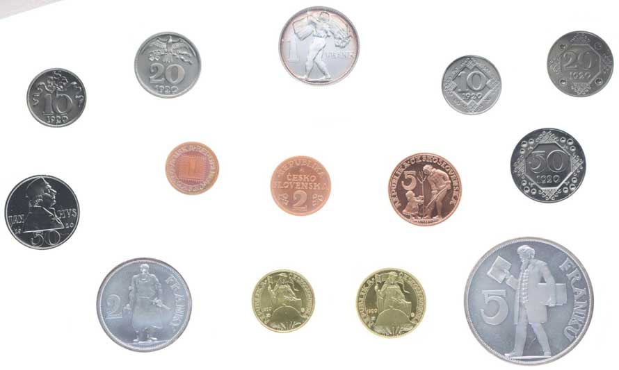 75. J.Šejnost - sada návrhů čs.mincí 1920: 1, 2, 5 Stot. - CuSnNi,