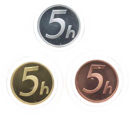 24. 5 Haléř 1924 - Punc.986 Au16 mm 2,65 g, Punc.999 Ag 16 mm, 1,85 g