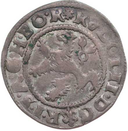| 203. | Haléř se čtyřrázem, Kutná Hora, česká koruna (z let 1384-1419)