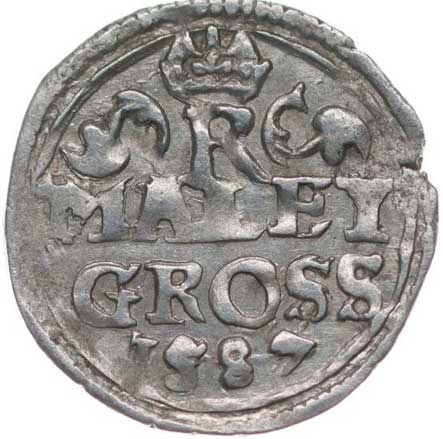 | 242. | Malý groš 1587, K.Hora-Šatný, HN.1b (opis 7a), Ja.6b