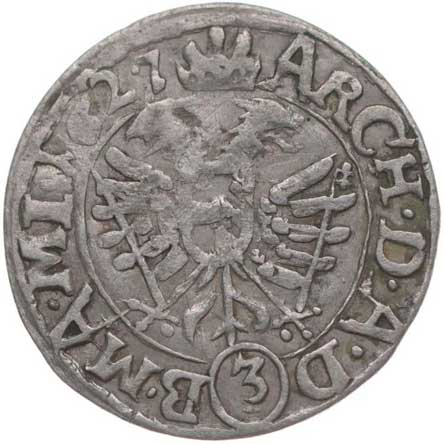 | 280. | 3 Krejcar 1627, Praha-Hübmer, J.28b, MKČ.760, Her.1148b