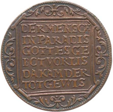Portrét zprava, opis / pohled na chrám, 3řádk.nápis v úseči, opis