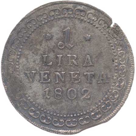 913. 1 Lira 1802 - pro Benátky, P.33, Her.582 dr.kraj.stř., dr.napr.stř. R! 1/1 4600,- --.-