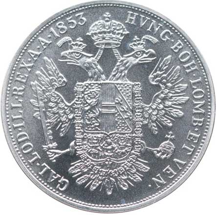 945. 1/2 Tolar 1853 B - oficiální novoražba Ag 900/1000, 30 mm, 13,2 g