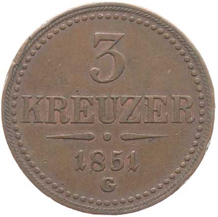 953. 3 Krejcar 1851 G dr.hry v av. -1/1- 360,- --.-