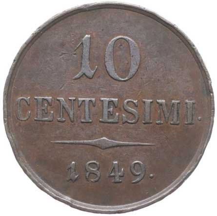 956. 10 Centesimi 1849 M dr.hry v av. a rev. tém.0/0 2800,- --.-