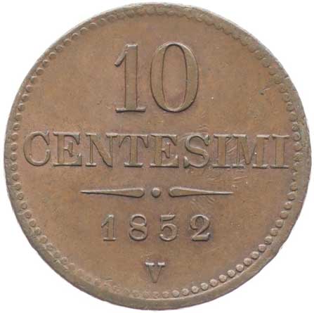 957. 10 Centesimi 1852 V tém.0/0 2000,- --.-