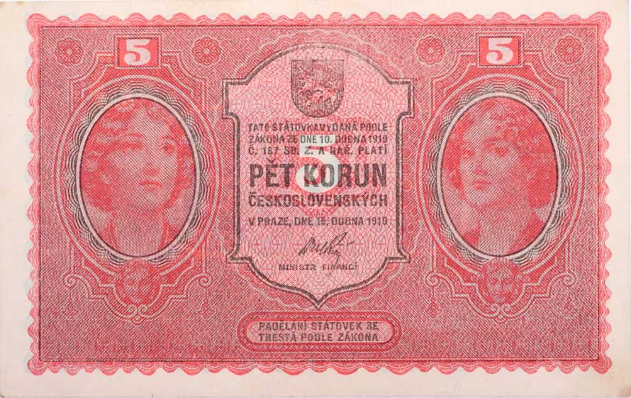 | 1143. | 5 Kč 1919, série 0130, B.8, Hejzl.8a - dobový padělek - pravděpodobně
