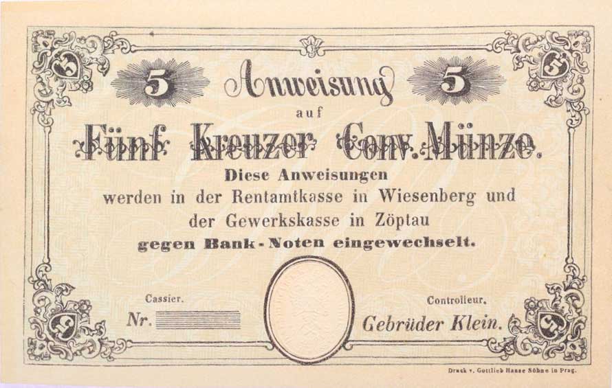 | 1167. | Nový Bor (Hayda) - 5 Kr. b.l., Friedrich Egermann, bez čísla a série