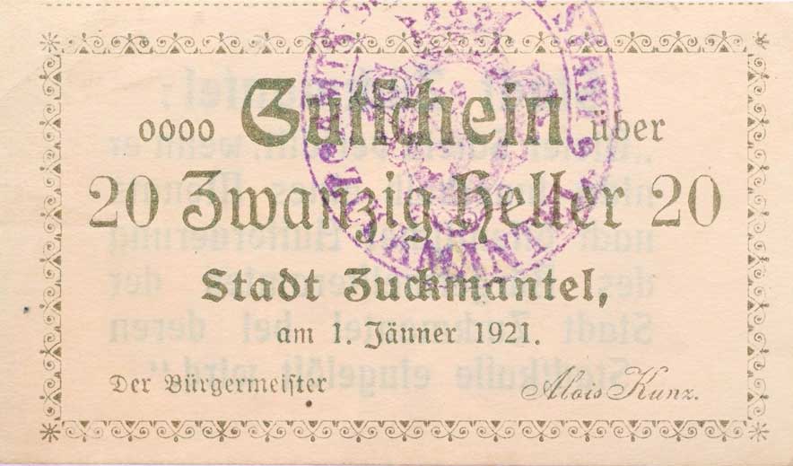 | 1160. | Zlaté Hory (Zuckmantel) - 20 Heller 1.1.1921, DH.240.1.2b | 1 | 500,- | --.- |