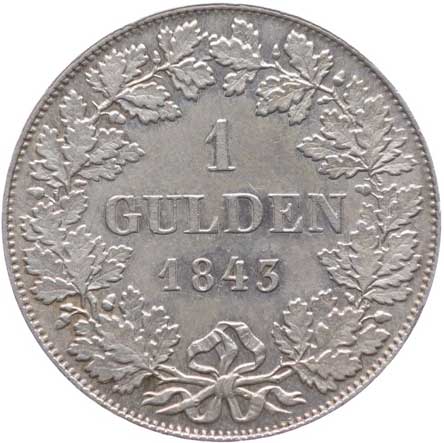 1202. 1 Gulden 1843, KM.316 tém.0/0 2400,- --.-