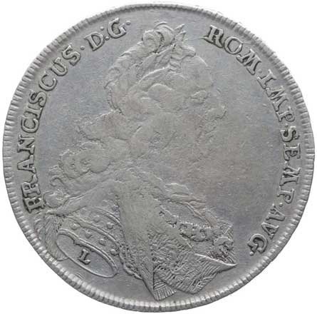 1210. Tolar 1759 M.F. - s tit. Frant.Lotrinského, korunovaný orel drží