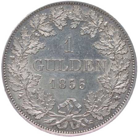 1249. Gulden 1855, KM.574, AKS.85 0/0 800,- --.-