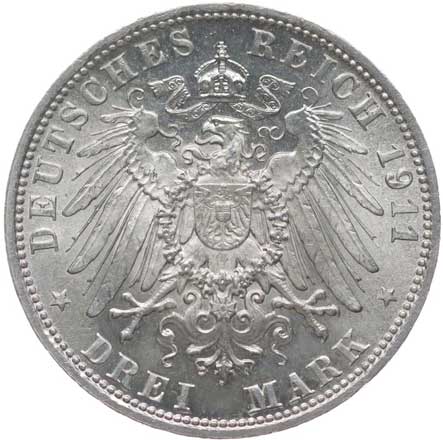 1282. 3 Marka 1911 F - stříbrná svatba, KM.636, J.177a 1/1 700,- --.-