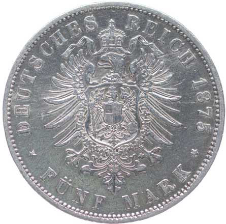 1262. 5 Marka 1875 A, KM.503.1, J.97 -1/1- 800,- --.-
