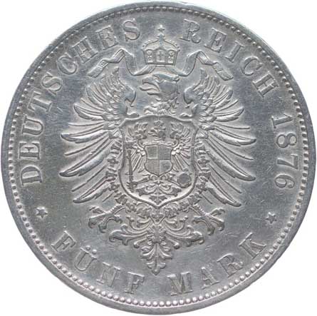1252. 5 Marka 1876 D, KM.502, J.42 -1/1- 1400,- --.-