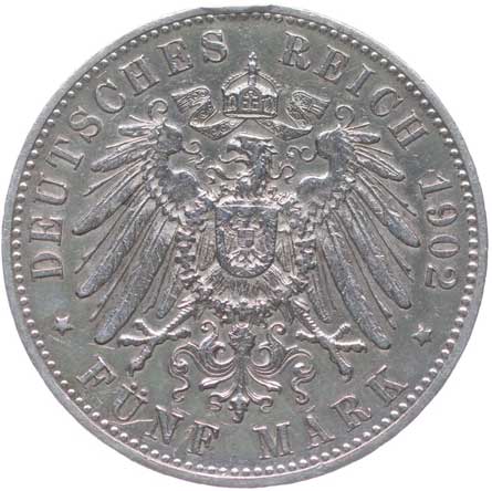 1253. 5 Marka 1903 D, KM.512, J.46 dr.st.kor.v av. -1/1- 500,- --.-