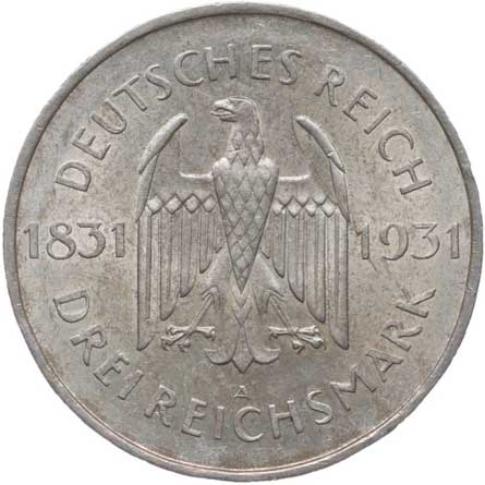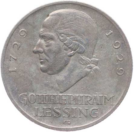 1286. 3 Marka 1929 G - Lessing, KM.60, J.335 1/1 900,- --.-